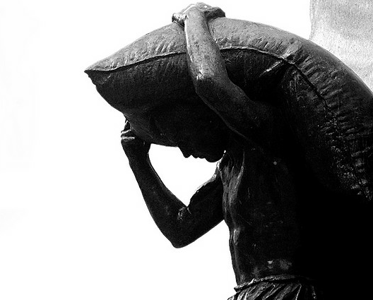 Nossas cabeças envergadas pelo peso das sacas e do cansaço